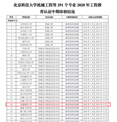 本网讯 2021年6月11日中国工程教育专业认证协会下发了《关于公布北京科技大学机械工程等291个专业工程教育认证中期审核结论的通知》,公布了2020年全国工程教育认证中期审核结论,我校机械设计制造及其自动化专业顺利通过了工程认证中期审核,有效期至2023年12月。