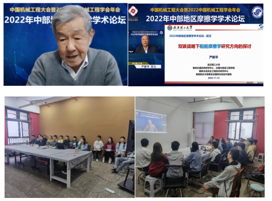本网讯 2022年11月12日,中国机械工程大会暨2022中国机械工程学会年会系列活动——2022年中部地区摩擦学学术论坛成功举办。论坛由中国机械工程学会摩擦学分会主办,湖北省机械工程学会摩擦学专业委员会协办,武汉理工大学、武汉材料保护研究所有限公司承办,获得了合肥工业大学、安徽建筑大学、南昌大学等多所知名高校的大力支持。安徽建筑大学设置了分会场,机电学院刘伟教授做为组委会委员参与了会议组织工作;机电学院部分师生在分会场线上参加此次学术论坛。