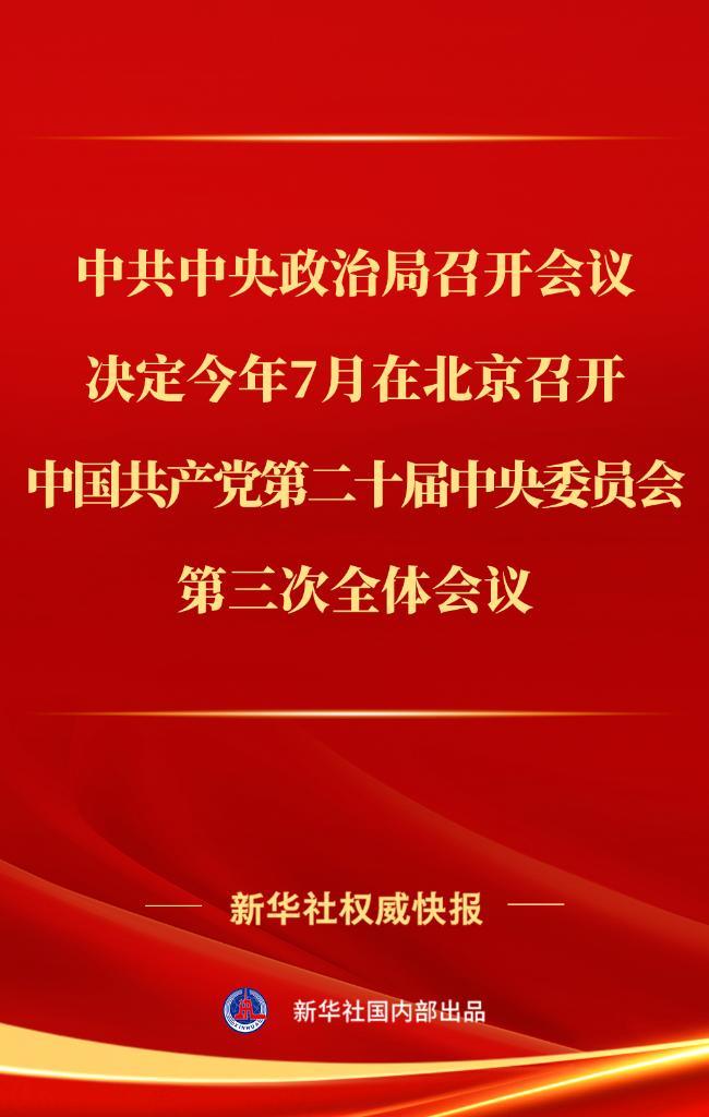 中共中央政治局4月30日召开会议,决定今年7月在北京召开中国共产党第二十届中央委员会第三次全体会议,主要议程是,中共中央政治局向中央委员会报告工作,重点研究进一步全面深化改革、推进中国式现代化问题。会议分析研究当前经济形势和经济工作,审议《关于持续深入推进长三角一体化高质量发展若干政策措施的意见》。中共中央总书记习近平主持会议。