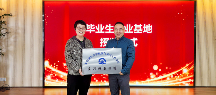 在与会人员的共同见证下,双方签署了战略合作协议,张润梅院长与刘新天董事长代表校企为“安徽建筑大学机械与电气工程学院实习就业基地”揭牌。