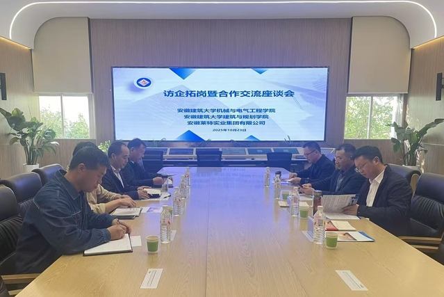 座谈会上,校企双方围绕人才供需、毕业生就业、产学研协同合作等议题展开深入交流,就绿色建筑、光伏设备维检、配电站环境监测等多项技术领域达成合作意向。