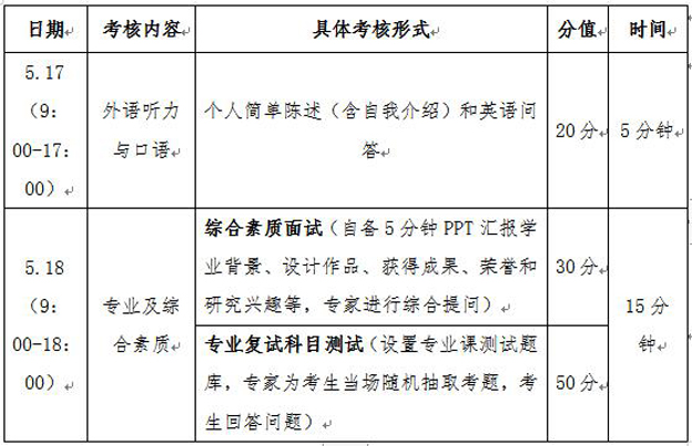 考生准备5分钟以内PPT汇报文件(不超过10页),综合呈现个人学业背景、设计作品、成果荣誉和研究兴趣等,待复试时以共享屏幕形式进行线上陈述,专家对材料进行综合考查。
