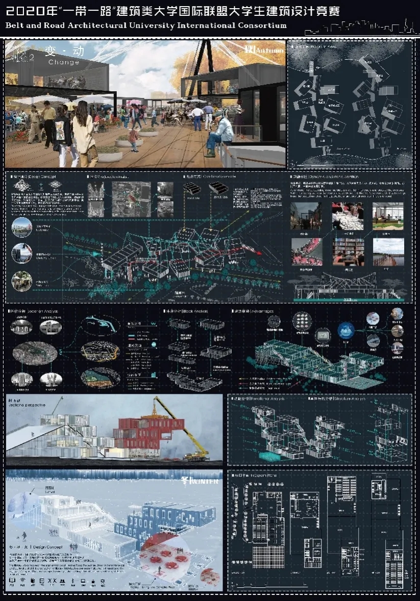 本网讯  近日,首次由北京市教育委员会、“一带一路”建筑类大学国际联盟、北京建筑大学联合举办的“2020年‘一带一路’建筑类大学国际联盟大学生建筑和结构设计竞赛”获奖名单公布,建筑与规划学院2018级城乡规划专业本科生白贤清等同学的两份作品分别获得二等奖和优秀奖。