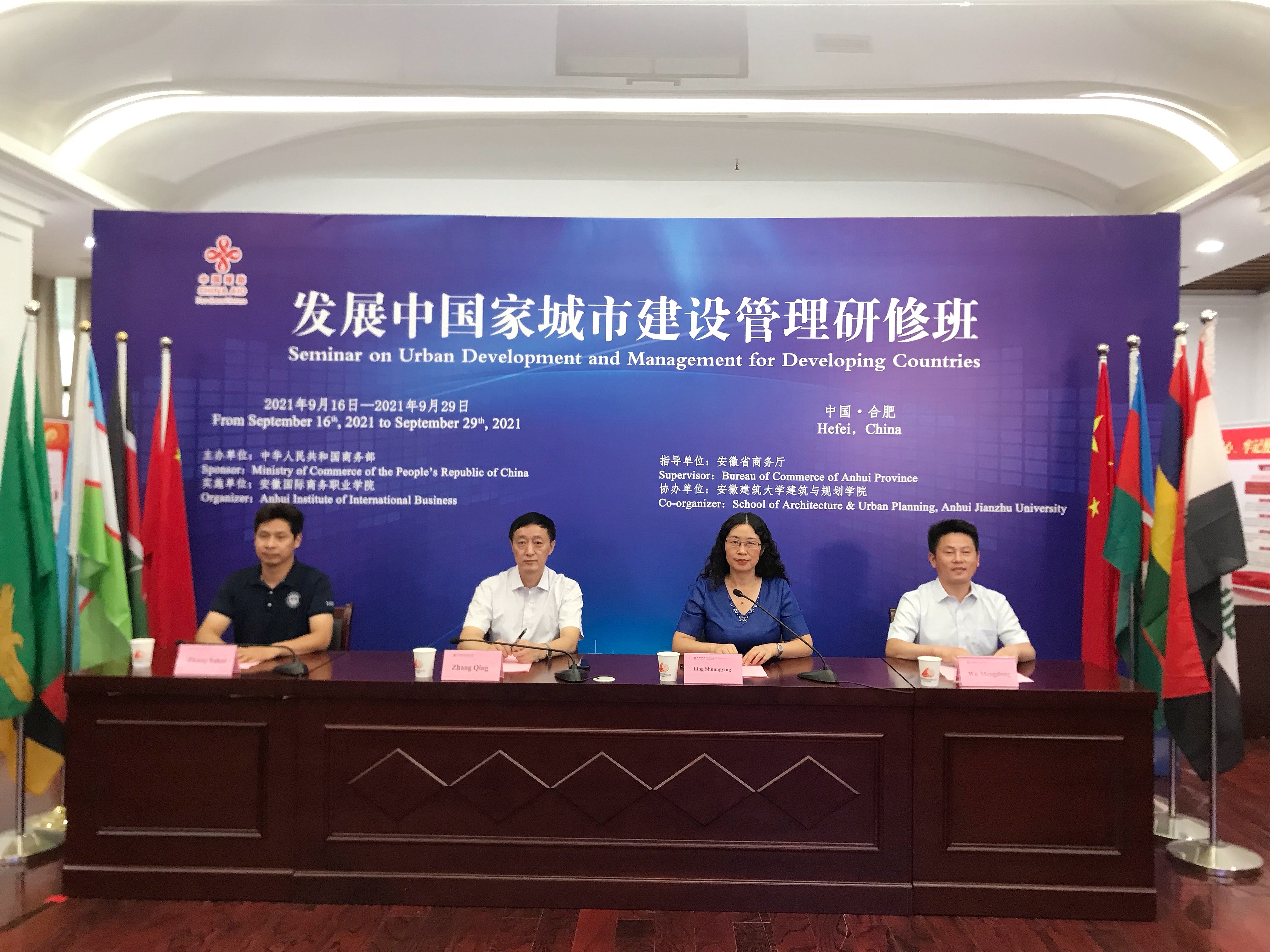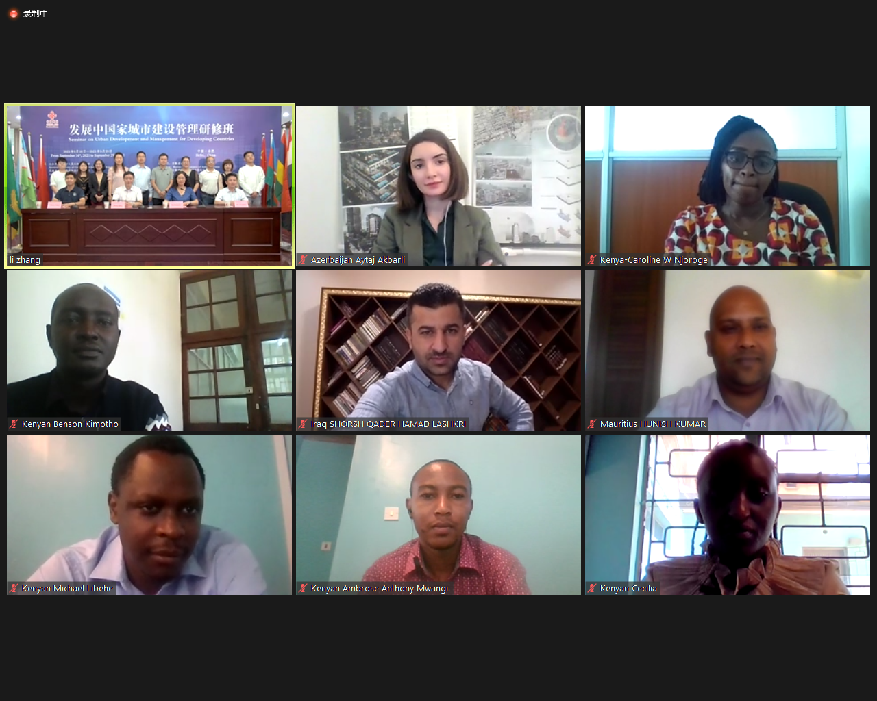 本网讯 9月29日,由中华人民共和国商务部主办、安徽省商务厅指导、安徽国际商务职业学院承办、安徽建筑大学建筑与规划学院协办的发展中国家城市建设管理研修班在合肥顺利结班(线上)。安徽国际商务职业学院校党委副书记、校长张卿,建规学院党委副书记吴梦东,安徽中医药大学资产运营总公司党总支书记张亚辉,授课教师代表,以及来自6个不同发展中国家的14名学员出席结业典礼。结业典礼由安商院校党委委员凌双英主持。