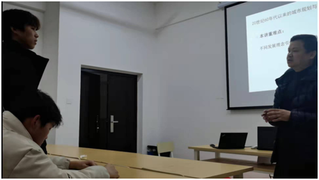 本网讯 为加强城乡规划专业课程的交流研讨和专业教师能力的培养,提升城乡规划低年级学生对核心专业知识的认知水平。2022年1月4日晚间,规划系汪勇政老师在学院(实训综合楼)7423教室开展教学观摩活动,规划系相关教师参加此次教学观摩活动。