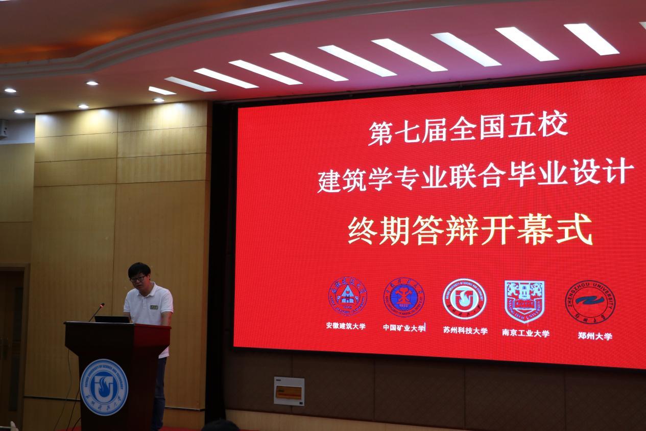 本网讯  2023年全国五校建筑学专业联合毕业设计终期答辩于2023年5月27-28日在苏州科技大学进行终期答辩。联合院校包括安徽建筑大学、中国矿业大学、郑州大学、南京工业大学、苏州科技大学五所院校80余位师生参会。
