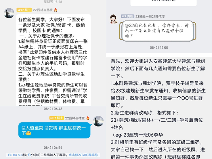 QQ闯关挑战分为“寻找伙伴”“宿舍分配调查问卷”“新生报到统计”等环节,让入学报到流程变得新颖有趣。线上沟通不但调动了学生的积极性和参与感,更培养了同窗之间的浓浓情感。