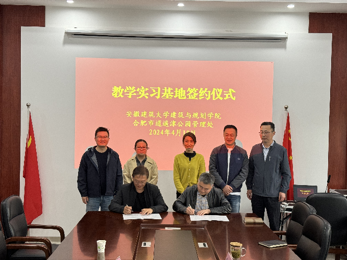 本网讯  4月10日下午,建规学院与合肥市逍遥津公园管理处举行了教学实习基地授牌仪式。逍遥津公园管理处书记胡从容及班子成员和所属党支部书记,建规学院党委书记唐劲松、建规学院景观系教师党支部参加了座谈