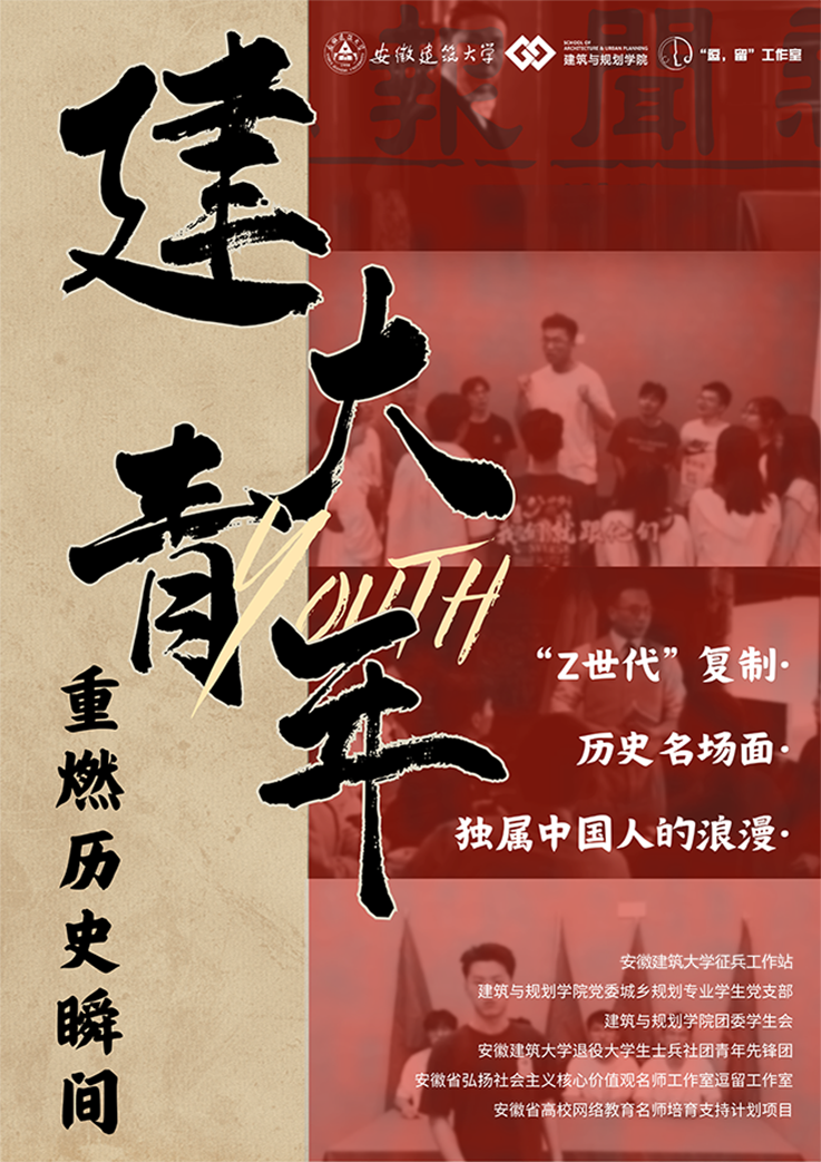 本网讯 为学习贯彻习近平总书记对学校思政课建设作出的重要指示精神,5月22日,安徽建筑大学征兵工作站联合安徽建筑大学建筑与规划学院在紫云路校区逸夫楼易班发展中心开展“建大青年重燃历史瞬间”系列教育活动,利用拍摄复制历史名场面转场短视频的方式,发出当代青年爱国的声音,感受这独属中国青年的浪漫。