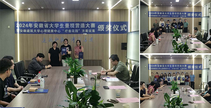 本网讯 79日,2024安徽省大学生景观营造大赛暨安徽建筑大学心理健康中心“疗愈花园”方案征集活动颁奖仪式在安徽建筑大学建筑与规划学院6612会议室召开,校党委常委、副校长李早,安徽省风景园林学会理事长王勇,校学生工作部负责人,建筑与规划学院领导班子参加颁奖仪式。