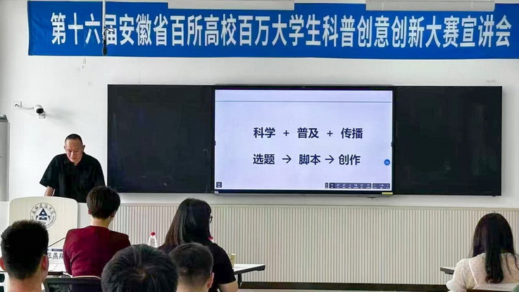 此次宣讲会不仅让安徽建筑大学学子对双百大赛的内涵与价值有了更深刻的认知,更点燃了他们投身科普创作的热情火种。在科技与文化深度融合的时代浪潮中,安徽建筑大学将持续深耕徽派文化与现代科技融合的新路径,以智慧为墨、以创新为砚,孕育出更多兼具文化底蕴与科技魅力的科普佳作,为科技强国建设与文化传承创新注入澎湃的青春动能。(作者:王昊禾 刘美婷;一审:李晶岑 二审:吴梦东 三审:吴运法)