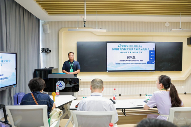 7月16日上午,主题分别为“园林康养与园艺疗法的科学研究”“园林康养与园艺疗法的规划设计”“园林康养与园艺疗法的推广应用”的三个分会场同步开启,邀请到24位专家学者和论文作者作报告。在“园林康养与园艺疗法的科学研究”分会场,我校建规学院景观系冀凤全教授做了题为《徽州乡村景观疗愈机制与价值转化路径研究》的主题报告,报告交流了徽州乡村景观的疗愈机制(自然生态疗愈、文化景观疗愈、空间体验疗愈),探讨其价值转化路径(生态产品开发、文旅融合、数字化赋能),并提出开发与保护的平衡策略。