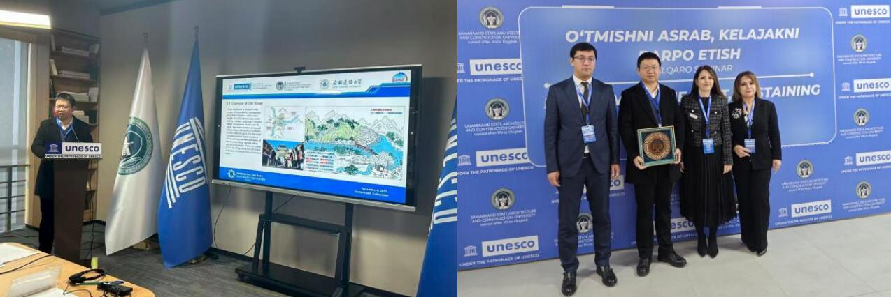 “守护历史,传承未来”国际研讨会开幕式在撒马尔罕国立建筑与工程大学召开,来自联合国教科文组织、撒马尔罕州、撒马尔罕国立建筑与工程大学的领导分别致辞,4位来自不同国家的专家做了关于历史文化遗产保护方面的主旨报告;还举行了遗产与气候变化、传统建筑保护技术、数字技术在遗产可持续利用的应用、城市遗产与可持续发展4个专题会场,顾康康教授做了“数字技术赋能城乡历史文化遗产传承与保护”的报告,系统介绍学院遗产保护与利用数字化技术方向的研究成果,与会专家进行了深入交流。