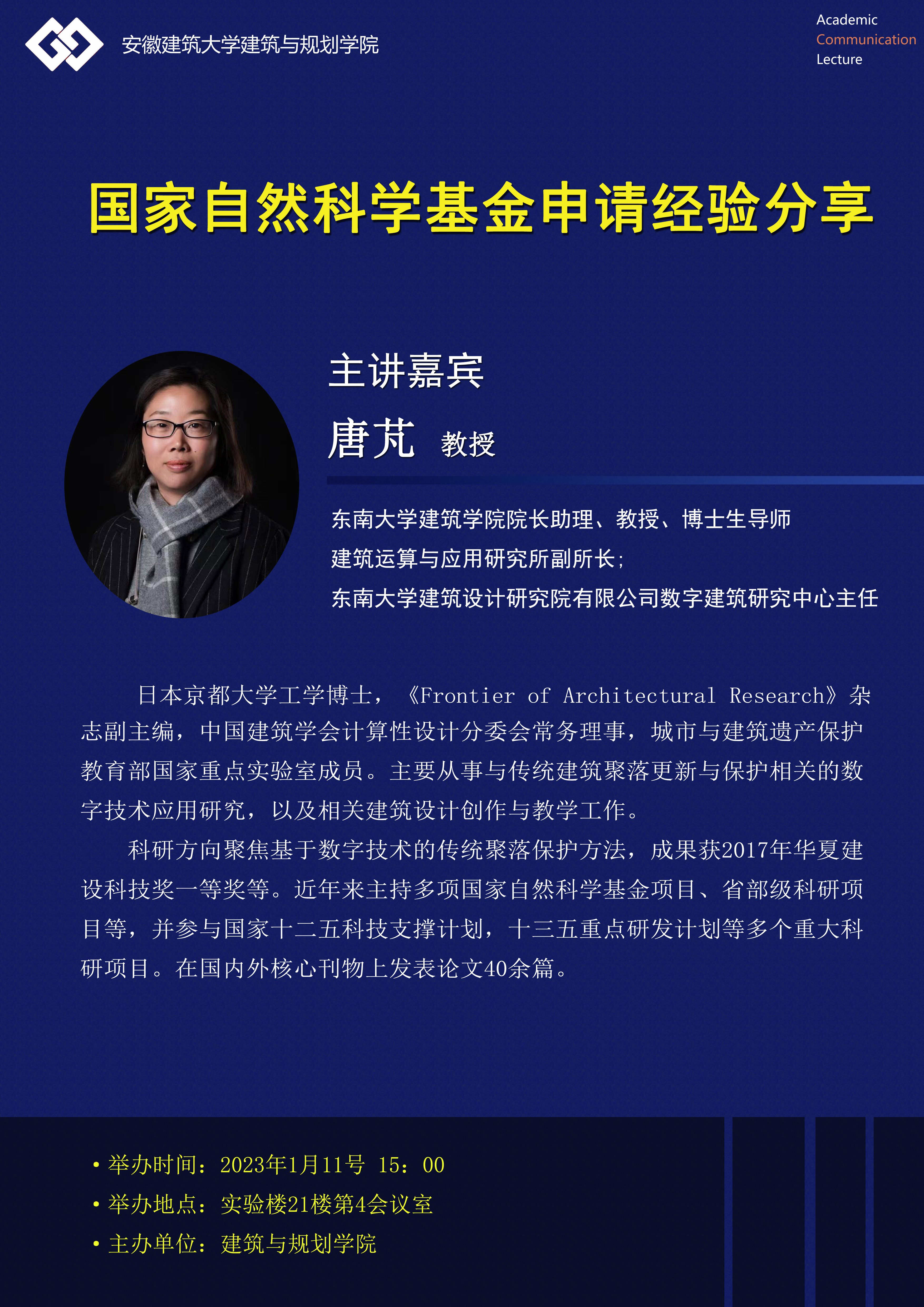 2023年第2场学术报告:国家自然科学基金申请经验分享