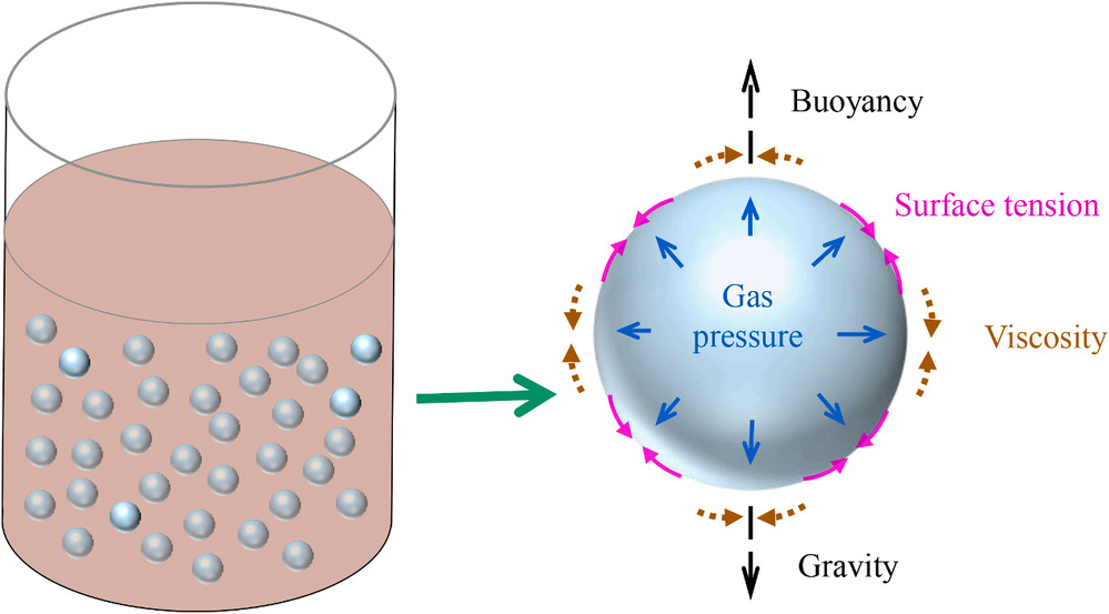 孔隙特征由浇注/发泡阶段孔隙与地聚物浆料的相互作用决定。在浇注/发泡阶段,孔隙与地聚物物浆受力情况。物理发泡产生的气泡受到浮力、粘滞阻力和重力(即排水力)。而重力和浮力的差异导致气泡的垂直运动和气泡大小的不均匀分布。气泡大小沿高度分布不均匀。在极端情况下,由于小气泡的凝聚,气泡的体积和浮力会大幅增加,然后较大的气泡会漂浮到表面并破裂,从地聚物泡沫混凝土中大量逸出的气体可能会导致塌膜。因此,在物理发泡混凝土中,孔隙的凝聚对体系稳定起到负面作用。相比之下,人们对化学发泡混凝土发泡过程中孔隙与浆体之间的相互作用关注不多。综合来看,现有研究大多涉及地聚物泡沫混凝土的制备技术和成分设计,目的是优化其宏观性能。虽然已知孔隙的大小和形状对混凝土性能有很大影响,但是在制备过程中,气体和粘合剂如何相互作用,进而影响这些孔隙的细节,这方面的研究还不够。这种相互作用对确定混凝土的最终质量和性能至关重要。