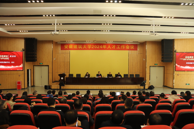 黄显怀作总结讲话。他指出,在2024年元旦刚过,我们就组织召开学校人才工作会议,系统总结2023年人才工作成效,全面谋划布置2024年人才建设重点工作,这既是全面贯彻习近平总书记在党的二十大报告中提出的“人才是第一资源”的重要指示精神,也是布置落实省委大力实施人才兴皖工程的重要举措,更是学校建设国内一流、特色鲜明的高水平建筑大学的现实之需。他从“进一步提高政治站位,不断增强做好人才工作的责任感和使命感”“进一步聚焦突出问题,采取切实措施全面加强高层次人才队伍建设”“进一步强化责任落实,构建支撑高质量发展的全周期人才服务体系”三个方面对学校人才队伍建设提出了新要求,从保障学校事业高质量发展的战略高度统筹谋划下一阶段人才工作任务。他呼吁,加快建设新时期人才工程,使命光荣,任务艰巨,时不我待。让我们坚持以习近平新时代中国特色社会主义思想为指导,全面学习贯彻党的二十大精神,聚焦学校“十四五”规划目标任务,大力实施人才强校战略,持续推进人才特区建设,坚定信心、同心同德,埋头苦干、奋勇争先,为全面建设国内一流、特色鲜明高水平建筑大学而团结奋斗!(文/图:郑鹿鸣 蒋芮;审稿:潘和平)