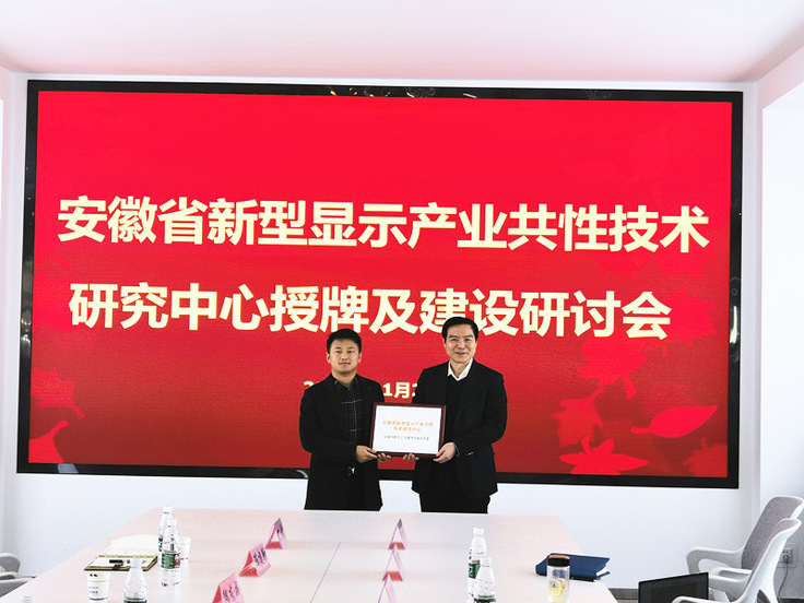 11月21日,安徽省新型显示产业共性技术研究中心授牌仪式在芯瑞达科技有限公司会议大厅举行。安徽建筑大学党委副书记、校长黄显怀教授,校科技处处长雷经发教授,副处长赵强教授,数理学院院长戈慈水教授,材化学院院长丁益教授,东超科技有限公司董事长韩东成、技术总监张亮亮,芯瑞达科技有限公司董事长彭友、总经理陈建新、副总经理李泉涌和相关科研骨干共同参加揭牌仪式和座谈交流。