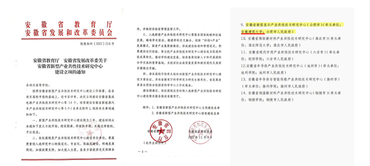 本网讯 近日,安徽省教育厅、安徽省发展和改革委员会联合下发了《安徽省教育厅安徽省发展改革委关于安徽省新型产业共性技术研究中心建设立项的通知》(皖教秘科[2022]216号),由安徽建筑大学和合肥市政府牵头,东超科技有限公司、芯瑞达科技有限公司共同申报的“安徽省新型显示产业共性技术研究中心”成功获批立项建设。