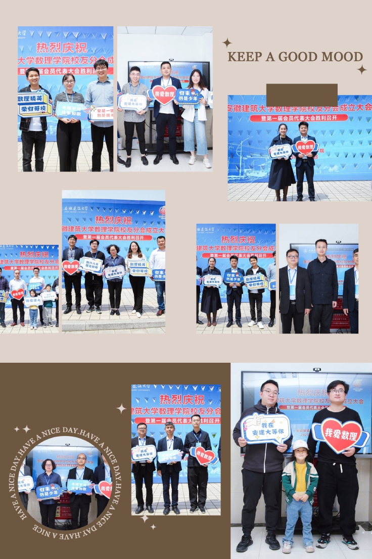 芳华待灼,砥砺深耕,奋楫笃行,履践致远。与会人员在会后进行了合影留念,安徽建筑大学数理学院校友分会成立大会圆满落幕。现场校友们在学院精心制作的老照片集锦视频《青葱岁月》中追忆曾经的大学时光,感恩母校在人生中留下的难忘回忆,表示将继续在校友分会这个平台上续谱新的建大乐章。(作者:赵妮;审稿:胡燕青)