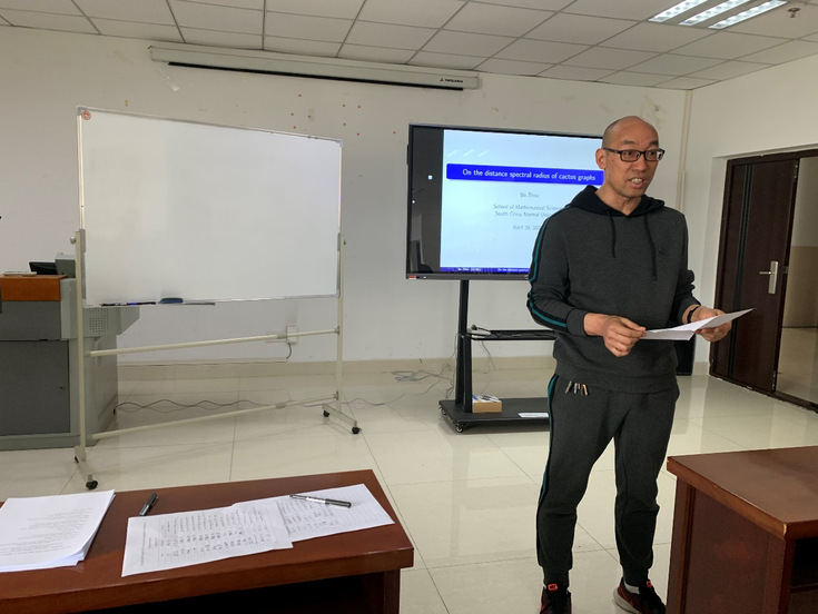 副院长刘华勇教授首先作开幕致辞,对来自安徽大学和中科大的教师、博士后和博士生及其它参会代表表示诚挚的欢迎,感谢参会专家们对安徽建筑大学数理学院的信任和支持。随后华南师范大学周波教授、安徽大学江宇博士、河北地质大学侯利航副教授(线上)、中科大Brhane Gebremichel博士后和熊彦禛博士后分别就代数组合领域最新研究成果和进展作了邀请报告。