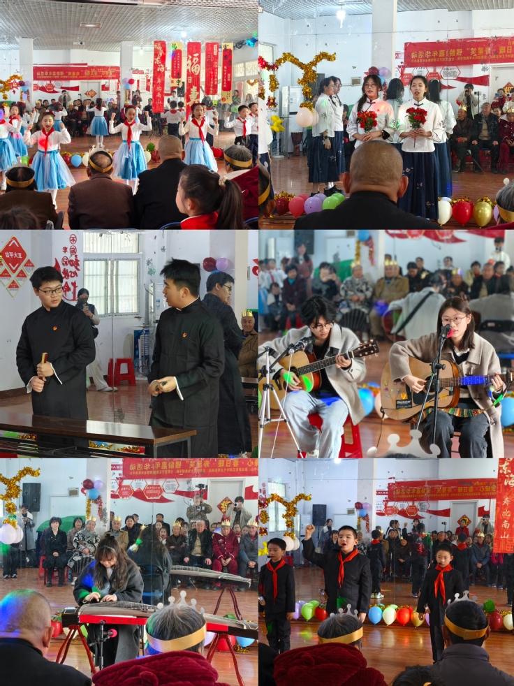 雷锋精神不仅是宝贵的精神品质,更是代代相传的文明火种。一场精彩的文艺汇演让孩子们、大学生们和社区老人们欢聚一堂,以‘一老一小’为桥梁,让长者们在欢歌笑语中感受温暖,让青年们在服务中感悟责任。演出在孩子们欢快的舞蹈《一颗小树苗》中拉开帷幕。他们用俏皮的肢体语言,生动演绎了小树苗在阳光雨露中茁壮成长的过程。随后数理学院的大学生志愿者与小学生们轮番上阵,为现场的观众奉献了一个又一个精彩节目。《少年中国说》稚嫩却坚定的童声传递着新时代少年的理想与担当,诠释着“少年强则国强” 的拳拳赤子心;合唱《先锋少年》将演出推向高潮,孩子们身着整齐服装,胸前红领巾格外鲜艳,用清澈嘹亮的嗓音,有力的手势动作,深情演绎了争当先锋的铮铮志向; “请党放心,强国有我” 的豪迈宣言,引得台下阵阵掌声;大学生们带来的女生合唱《映山红》惊艳登场,动人心弦;古筝独奏《战台风》将传统乐器的文化魅力展现得淋漓尽致;相声《我要做好人》以诙谐幽默的表演引发全场阵阵欢笑,在轻松愉悦的氛围中传递着向上向善的正能量。