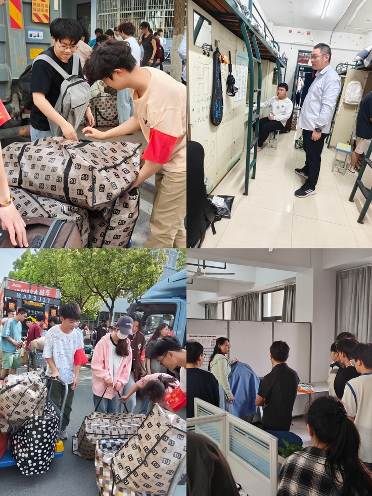 学院组织党员、学生会志愿者开展“暖心搬迁”志愿服务活动。志愿者们帮助跨校区转专业学生搬运行李,从清点整理到搬运入舍,全程细致入微。搬迁结束后,学生党员带领新同学参观学院学科实验室,先进的实验设备、前沿的科研项目,让同学们沉浸式感受学院浓厚的学术氛围,对未来的专业学习充满期待与信心。学院领导深入转专业学生宿舍,与同学们亲切交谈,详细了解学生生活、学习等情况,鼓励同学们积极参与新专业的老师、同学加强沟通,主动参与班级各项活动,早日融入数理大家庭。