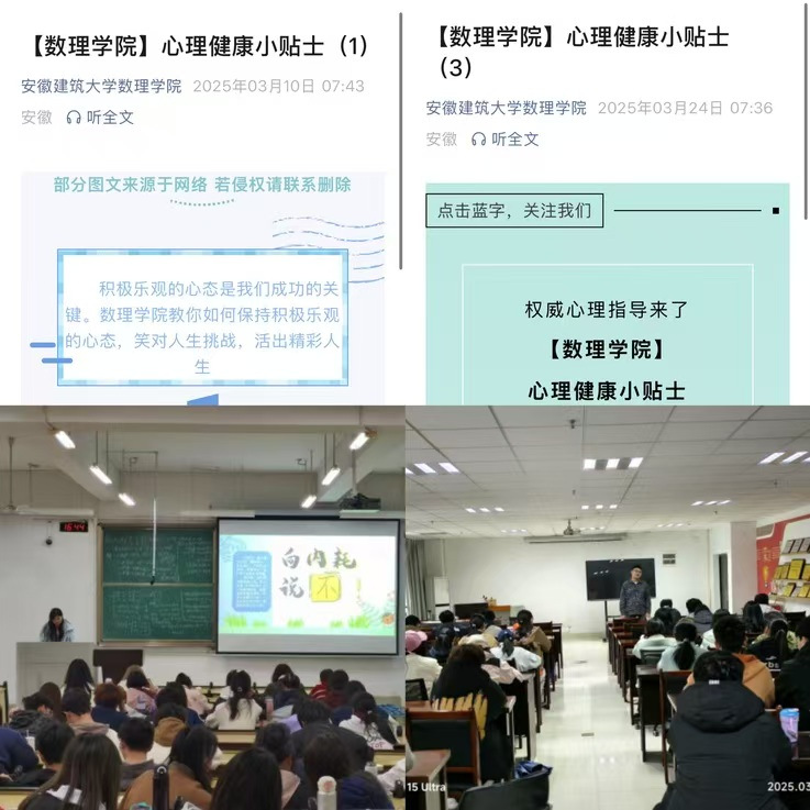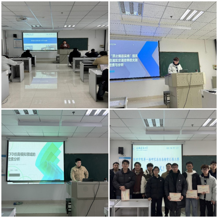 以科技创新为主线,通过开展各类新颖的讲座和比赛来培养学生创新科研的能力。这种浸润式科创活动既塑造了学生批判性思考与跨界整合的思维特质,更在持续突破认知边界的过程中,孕育出敢闯会创的开拓精神,为青年学子从知识习得者向创新引领者的蜕变注入持久动能。如安徽大学陈华友教授应邀来校作学术报告,举办第十六届安徽建筑大学大学生职业生涯规划大赛暨第二届学院选拔赛、第二届算法设计与编程大赛、“数理研途赛风采、信息检索见真章”——数理学院第一届研究生信息检索汇报大赛、第十一届“挑战杯”大学生课外学术科技作品竞赛院级选拔赛等活动,激发当代大学生勇于探索的精神,提高数理学子的创新创业能力。