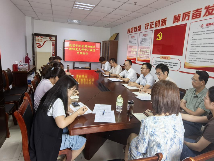 本网讯 9月12日下午,应用物理系教师党支部于徽风楼1208会议室召开深入贯彻中央八项规定精神学习教育总结会议。校党委常委、副校长杨科以普通党员身份出席,学院党委书记胡燕青、民主党派代表尤玉伟列席,支部全体党员参会,会议由党支部书记李平主持。