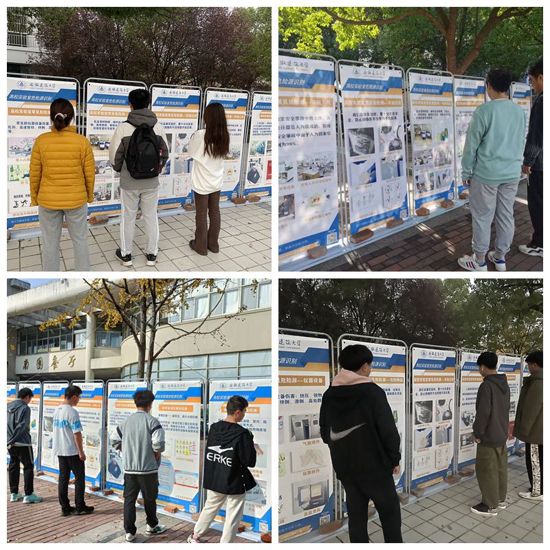 11月14日至11月28日,实验室与设备管理处在学校南食堂、北食堂、理化楼等地以展板的形式,对实验室存在的危险源和安全注意事项等进行了详细地展示,助力实验人员牢固树立安全无小事,防患于未然的安全意识。