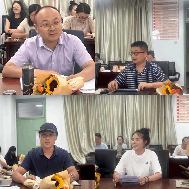 在教师代表分享环节:胡金富、李东海、徐平、王晓玉四位中青年教师代表结合自身教学科研经历,畅谈心得体会。胡金富老师结合自身科研经历,分享心得体会,他提出做好马院学科建设,要处理好发展上“本色与特色”的关系,聚焦问题,寻找学科增长点;处理好“能力与动力”的关系,激励老师提升科研能力;师资队伍建设上处理好“配齐与建强”的关系。徐平老师作为教研室主任,分享教研室建设经验。他认为教研室是教学科研的“基层堡垒”,要通过建立每周集体备课、每月教学研讨、每学期成果交流机制,实现资源共享与协同发展;李东海老师围绕论文发表与课题申报展开分享,结合自身多年经验给出实用建议,他还现场分享了论文投稿期刊选择、课题申报书撰写框架等实用技巧;王晓玉老师则聚焦青年教师成长,她表示:“青年教师要主动参与学术交流与教学实践,在实践中积累经验,逐步形成个人教学科研特色。”