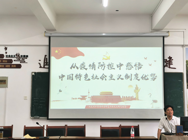 李大华以“从疫情防控中感悟中国特色社会主义制度优势”为题,从“党的集中统一领导的优势、坚持全国一盘棋的优势、高效的社会动员的优势、应急举措坚决果断的优势”四个方面来阐述疫情期间中国特色社会主义制度的优势性。他强调在这次疫情防控阻击战中,各级党组织和广大党员、干部牢记人民利益高于一切,以习近平同志为核心的党中央坚持“人民至上、生命至上”,带领全党全军全国各族人民,凝聚起抗击新冠肺炎疫情的磅礡力量。各级党组织和广大党员干部冲锋在前、顽强拼搏,广大医务工作者义无反顾、日夜奋战,人民解放军指战员闻令而动、敢打硬仗,人民群众众志成城、守望相助,有力诠释了党的领导优势、依靠人民群众的优势等。 通过本次微党课,全体党员认识到,疫情是对党和人民的一次重大考验,同时也充分彰显了中国特色社会主义制度的优越性。党员们纷纷表示,在今后的学习生活中,要时时刻刻发挥党员先锋模范带头作用,为落实疫情防控常态化和践行初心使命奉献自己的力量。(文/图:蒋豪杰 王月竹;审核:胡燕青) |