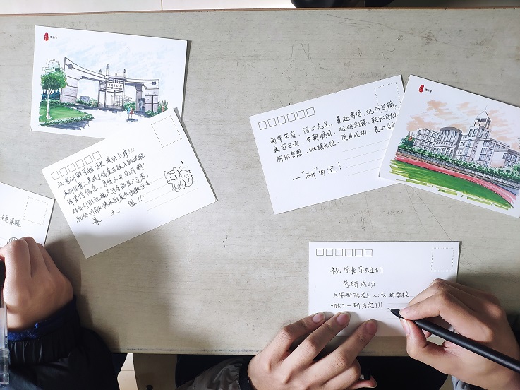 本网讯 12月24日,土木学院土木工程学生第一党支部举办明信片送祝福活动,在硕士研究生考试进入倒计时之际,用温暖助力考研学子求学路。