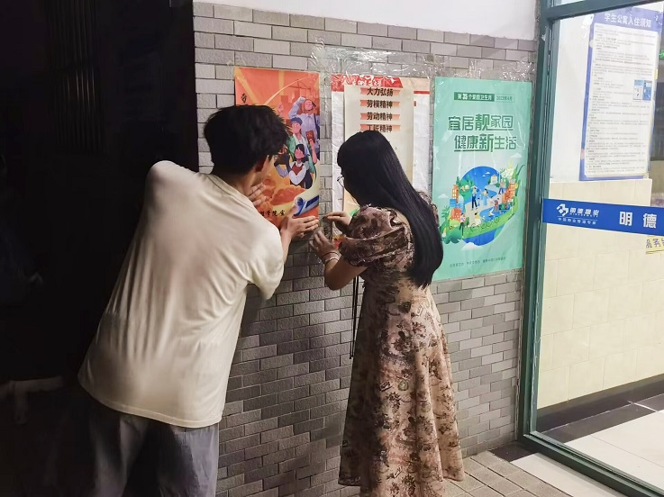 张贴海报,宣扬劳动美德 为让学生们树立正确的劳动观念和劳动态度,培养热爱劳动的理念,土木学院开展集中宣传活动。通过制作关于劳动教育的海报,张贴在宿舍楼下,进行线下宣传;通过学院微信公众号发布劳动教育的视频,开展线上宣传。通过线下线上的同步开展,培养学生勤俭节约、踏实肯干、意志坚定、团结协作的优良品质,使大家成为有大爱、大德、大情怀的人。