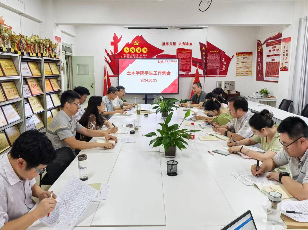 本网讯 为确保2024届毕业生就业工作顺利完成,扎实推进学生工作有序开展,6月24日,土木学院在徽匠楼1306会议室召开六月份学生工作例会,主要就近期毕业生离校工作及学生安全稳定工作等重点任务进行布置。学院领导班子、专兼职辅导员共同参会,会议由学院党委书记王媛主持。