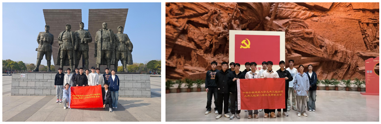 本网讯 为深入贯彻落实党的二十大和二十届三中全会精神,弘扬红色传统、汲取奋进力量,近日,土木工程学生第一、第二党支部组织全体党员赴安徽创新馆和渡江战役纪念馆开展“守正创新担使命 砥砺奋进启新程”主题党日活动,通过实地参观学习,感悟科技发展伟力,传承红色革命精神。 探访创新高地,凝聚奋进动能 安徽创新馆以“创引擎”“创智慧”“创未来”三大板块为主线,集中展示了安徽在量子信息、人工智能、集成电路等领域的重大科技成果。“墨子号”量子卫星模型、“九章”量子计算机等展品,让党员们深刻感受到科技创新对国家发展的战略支撑作用。在“优势传统产业升级创新成果展区”前,党员们观摩了“零能耗建筑”“装配整体式混凝土框架结构建筑”“超高层智能顶模”“建筑隔震”等土木专业领域优秀的创新成果。杨李兴同学表示:“安徽创新馆之行让我们直观体会到‘科技自立自强’的深刻内涵。作为党员,要强化创新意识,主动将学习成果转化为推动高质量发展的实际行动。”