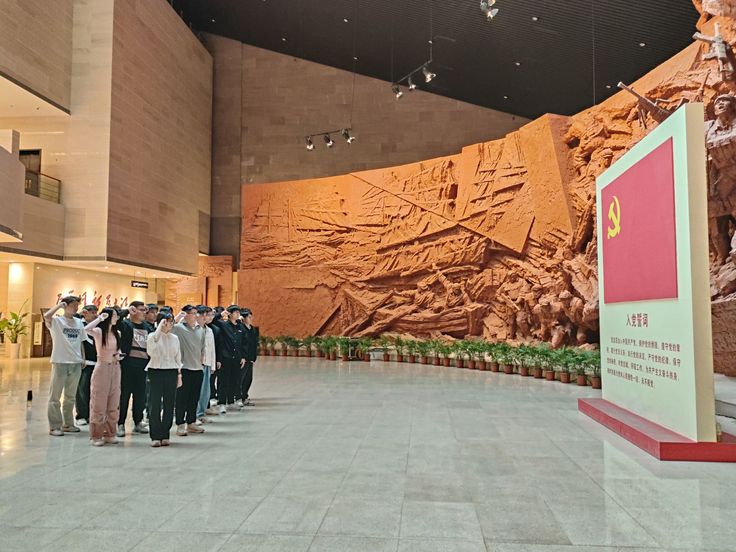 重温峥嵘岁月,赓续红色血脉 下午3点,全体党员前往渡江战役纪念馆。馆内通过丰富的文物、影像和场景复原,生动再现了1949年百万雄师过大江的壮阔历史。在“战前形势”“战役准备”“突破江防”等展区,党员们仿佛置身于那段烽火岁月,深刻领悟到“渡江精神”中蕴含的敢为人先、不畏艰险的革命意志。在英模人物事迹墙前,陈金涛同学感慨道:“今天的幸福生活是无数先烈用鲜血换来的。我们要传承红色基因,立足岗位,以敢闯敢拼的劲头和求真务实的作风践行初心使命。”