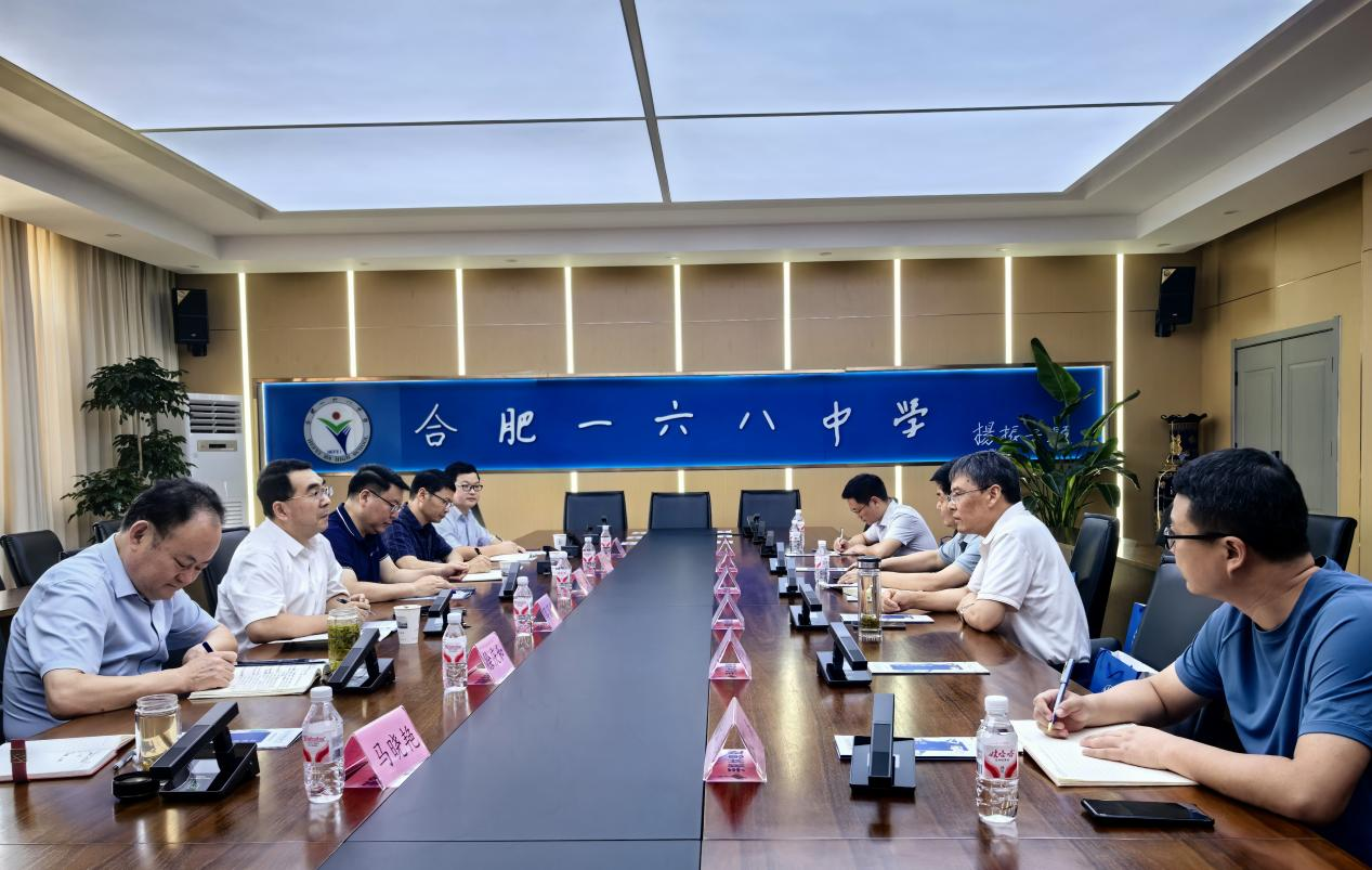 本网讯 7月1日,校党委副书记、校长蔡国军率队前往合肥一六八中学开展大中学校“茅以升班”对接建设交流和相关招生宣讲活动。合肥一六八中学党委书记吴菊文,党委副书记、校长苏键,教务处副主任张禹以及“茅以升班”班主任丁时磊;安徽建筑大学教务处处长马巍,学工部部长徐庆和,马克思主义学院书记李万银、院长马晓艳,“茅以升班”执行班主任、土木工程学院副院长施国栋等相关负责人参加。交流会由苏键主持。