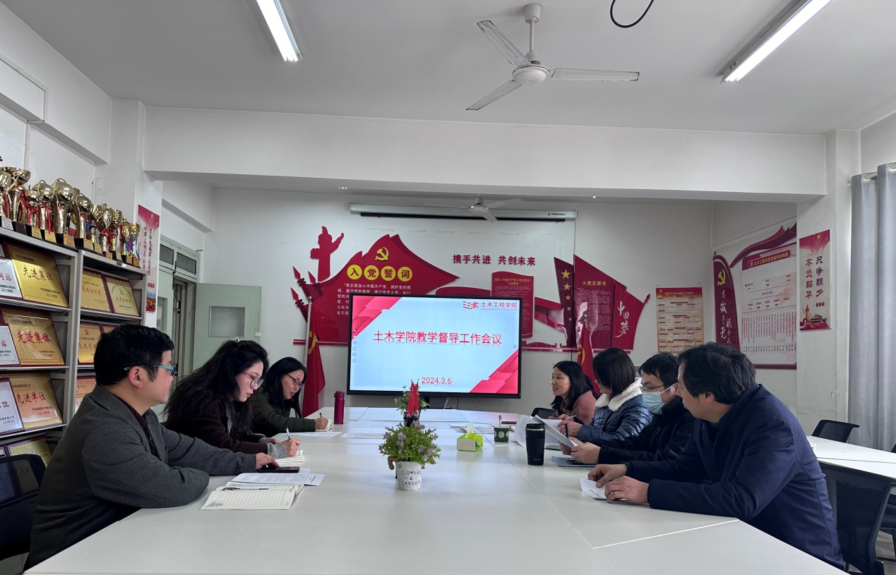 一、 土木学院召开教学督导期初工作会议 2024年3月6日下午,土木学院教学督导期初工作会议于学院三楼小会议室召开。本次会议由院督导组组长韦璐老师主持,副院长施国栋、校督导代表及学院二级督导全体成员参加。