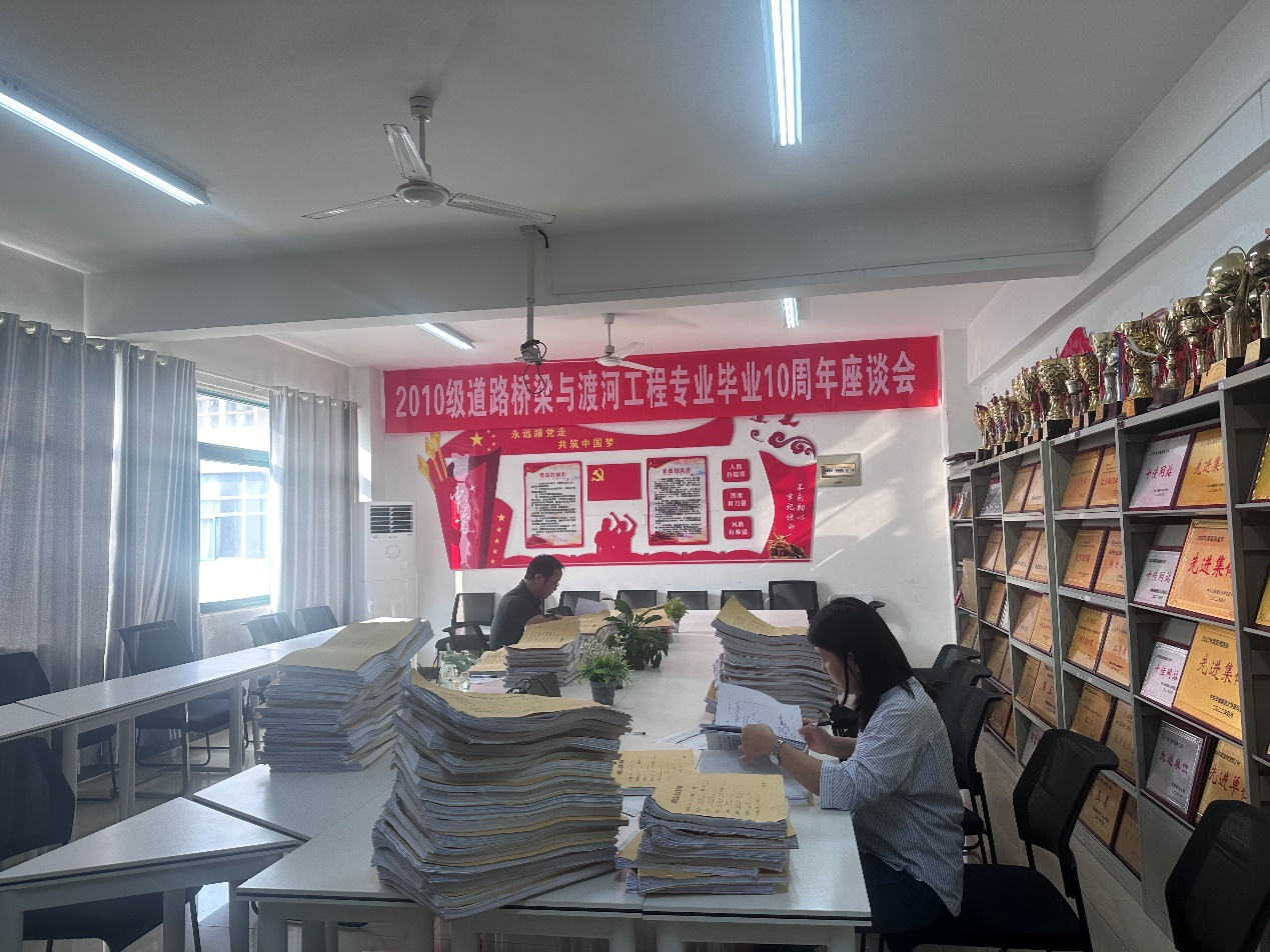 三、 教学材料检查,督导严把关。 1、9月7日,督导组组长韦璐老师作为专家被抽调至教务处参加毕业设计的抽查工作,坚决把好教学材料质量关,并把发现的问题及时反馈至土木学院。 2、期初教学检查,督导先行。 9月26日,督导组老师参加土木学院的期初教学检查工作,对学院的试卷、毕业设计、课程设计、实践实验材料进行认真检查,并对发现的问题及时形成书面报告,通知督促教师整改。特别是对上学期检查出来的问题材料重点复查,确保教学工作的规范性、严谨性。