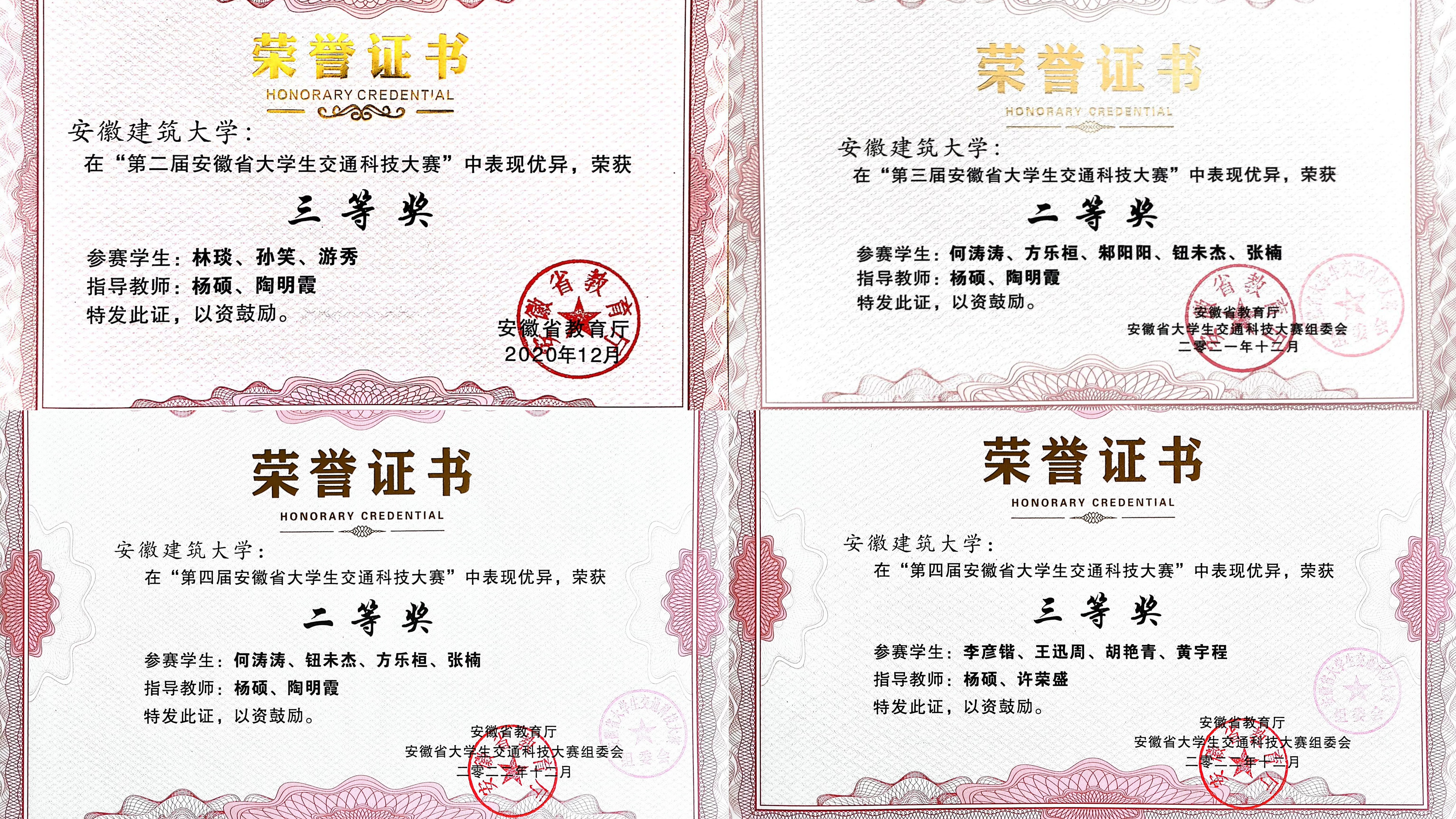 学科交叉的课程内容,经过杨硕老师的分解、理顺、重塑变得有规律可循。像极了粉黛草等到了一阵风吹,瞬时间成了一道靓丽的风景线。听他讲课的学生,站在风景线里,沐风也沐花香。 博观约取,方见苍穹之阔 厚积薄发,终得金石为开 “学而时习之,不亦说乎?”。作为课堂教学的有效延伸,杨硕老师通过实验、课程设计培养学生在图纸绘制、模型搭建、现场调试中,将课本公式转化为解决实际问题的能力。“理论筑基、实践赋能”,杨硕老师带领交通、道桥专业的学生在历届“安徽省大学生交通科技大赛”中,屡创佳绩,把学生和自己的梦想,同步“照进”了现实。