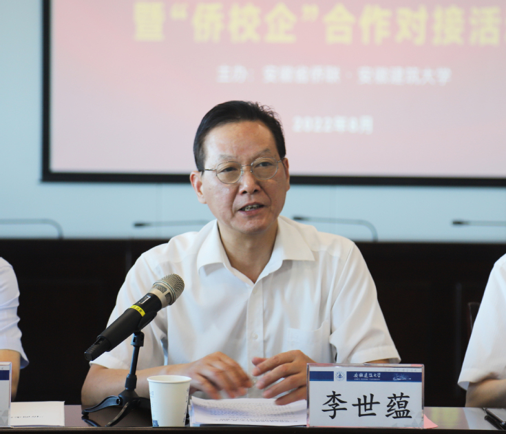 本网讯 为深入贯彻党中央、国务院关于促进高校毕业生就业决策部署和中国侨联“侨企互通促就业”工作要求,搭建“产学研用”对接平台,促进高校科技成功转化,安徽建筑大学与安徽省侨联于8月12日联合主办“侨商走进安徽建筑大学暨“侨校企”合作对接活动。省侨联党组书记、主席李世蕴及有关领导,安徽建筑大学党委书记孙道胜及相关部门负责人,省属高校侨联代表,省侨商联合会会长、欧普康氏科技股份有限公司董事长陶悦群及部分会员代表参加会议。会议由省侨联党组成员、专职副主席、一级巡视员杨冰主持。