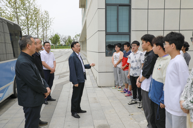 调研期间,孙道胜一行前往位于天长市的南京信息工程大学金牛湖产教融合园区,参观了新能源实验室、可视化教学中心、双创街区,走访了学生宿舍和食堂,亲切看望了两校联合培养的拔尖班学生,和同学们进行了座谈,关心询问同学们在园区的学习和生活情况,表扬了同学们的学习状态和进取精神,听取了同学们的问题和建议,嘱咐各位同学珍惜良好的学习环境,传承两所学校的优秀传统,不辜负学校期盼,早日成为国家栋梁之材。
