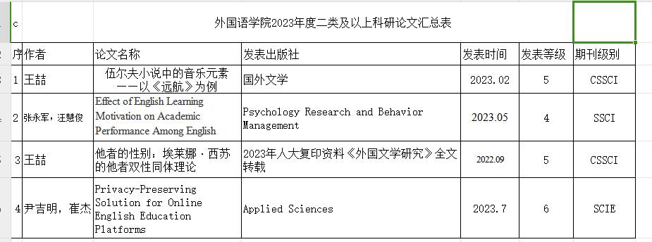 外国语学院2023年度二类及以上科研论文汇总