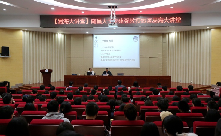本网讯 4月27日,南昌大学李建强教授做客安徽建筑大学第96期易海大讲堂,为学校师生带来了一场题为“制造业集聚如何影响绿色经济效率?”的精彩报告。报告会由校党委常委、副校长闵杰教授主持,经济与管理学院领导班子、部分骨干教师、研究生和本科生共计200余人参加了报告会。