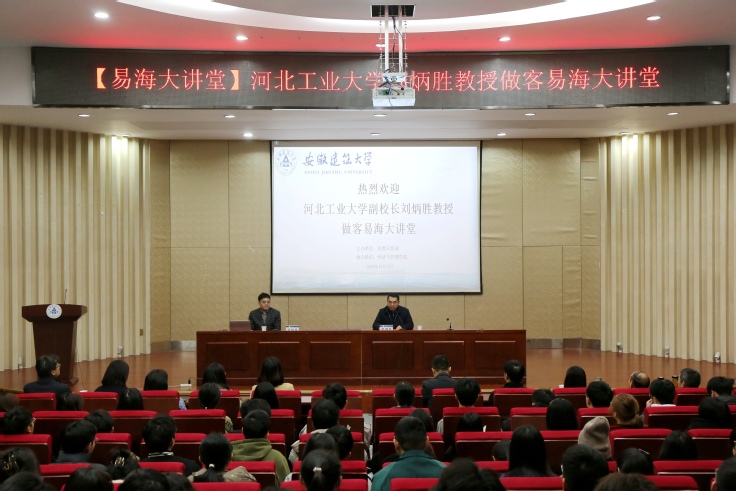 本网讯 11月17日上午,教育部高等学校公共管理类专业教学指导委员会委员、河北工业大学副校长刘炳胜教授做客安徽建筑大学第108期易海大讲堂,为我校师生带来一场题为“工程管理专业发展中的问题、对策与展望”的精彩学术报告。校党委常委、副校长蔡国军教授,重庆大学公共管理学院副院长、博士生导师汪涛教授,安徽建筑大学特聘教授、东南大学土木工程学院博士生导师邓小鹏教授出席本期易海大讲堂。报告会由蔡国军教授主持,经管学院领导、骨干教师、研究生和本科生共200余人参加报告会。