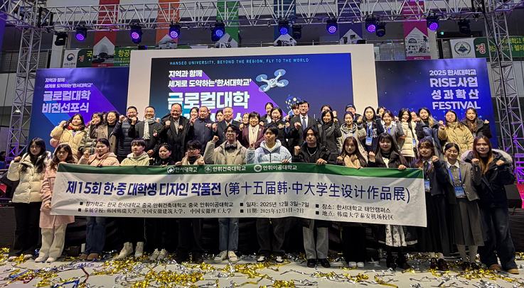 本网讯 12月3日至5日,第十五届中韩学生设计作品展在韩国韩瑞大学成功举办。该展览由我校与韩瑞大学、安徽理工大学联合主办,校党委副书记李早教授应邀带队参展。学生处、建筑与规划学院、设计与创意学院、机械与电气工程学院相关负责人员及19名设计类专业学生组成代表团,携19件优秀设计作品及6件实物模型展品赴韩开展交流活动。