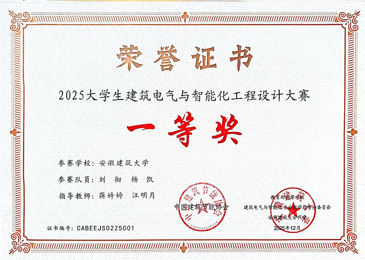 本网讯 近日,由中国建筑节能协会主办,教育部高等学校建筑电气与智能化专业教学指导分委员会担任指导单位,安徽建筑大学电子与信息工程学院、中国建筑节能协会智慧建筑专业委员会联合承办的“2025大学生建筑电气与智能化工程设计大赛”在我校举办。