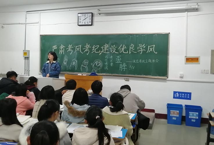 本网讯 为严肃考风考纪,建立良好考试秩序,营造以勤奋学习为荣的良好学风,12月31日,经管学院在北校区召开诚信考试主题班会。