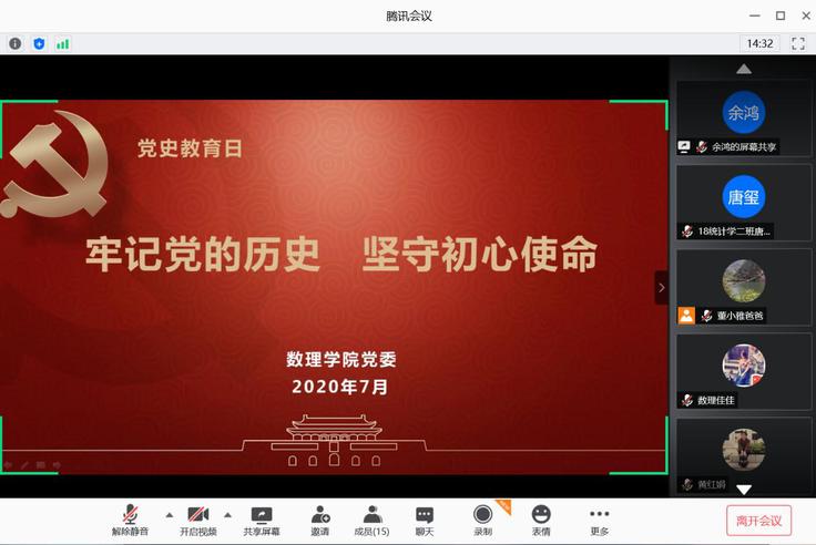 本网讯 7月15日,数理学院党委在线上开展“党史学习教育日”活动。