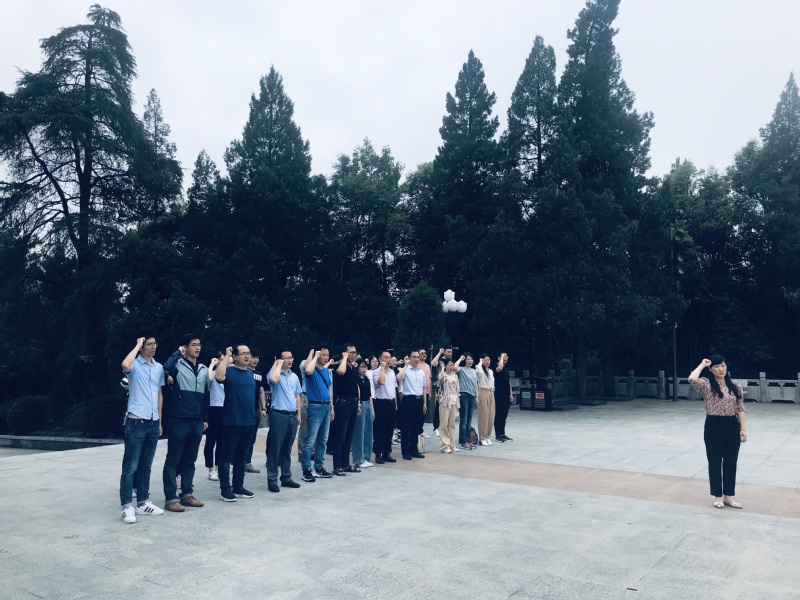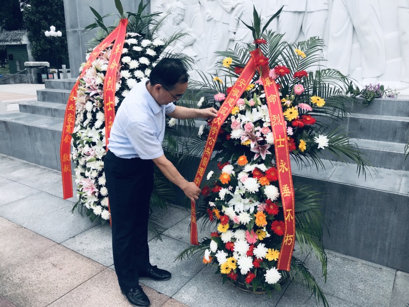 随后,在革命烈士纪念塔前,在学院党委书记李道先带领下举行敬献花篮仪式,全体党员教师向革命先烈静默肃立、深深鞠躬,深切缅怀革命先烈。党委副书记马晓艳带领全体党员教师面对纪念塔,举起右手,庄严宣誓,重温入党誓词。